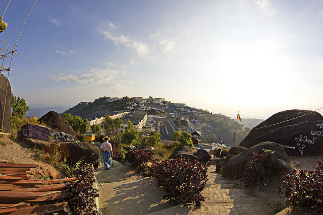 One of Myanmar’s most visited sites, Kyaikhtiyo Pagoda is located in the small town of Kyaikhito, in the Mon state. This is 160 km away from Yangon, a 3.5 – 4 hour drive to the base camp, followed by a truck ride to Hermit Hill, and about a 1 hour hike to the Golden Rock. It is a 7.3 meters high pagoda erected atop a rock covered under layers upon layers of gold leaf – all delicately balanced on the precipice of a granite cliff. According to Burmese legend, this strange pagoda is kept in place by a single hair of the Buddha.